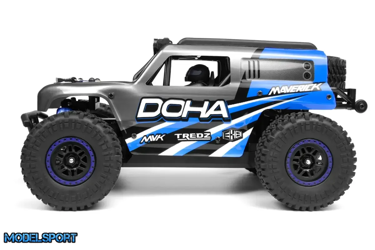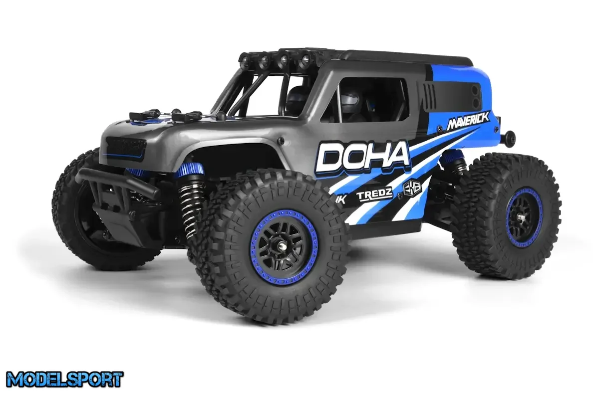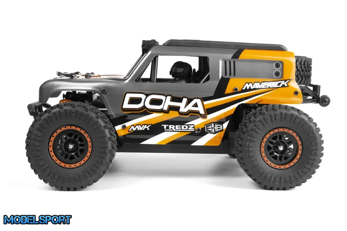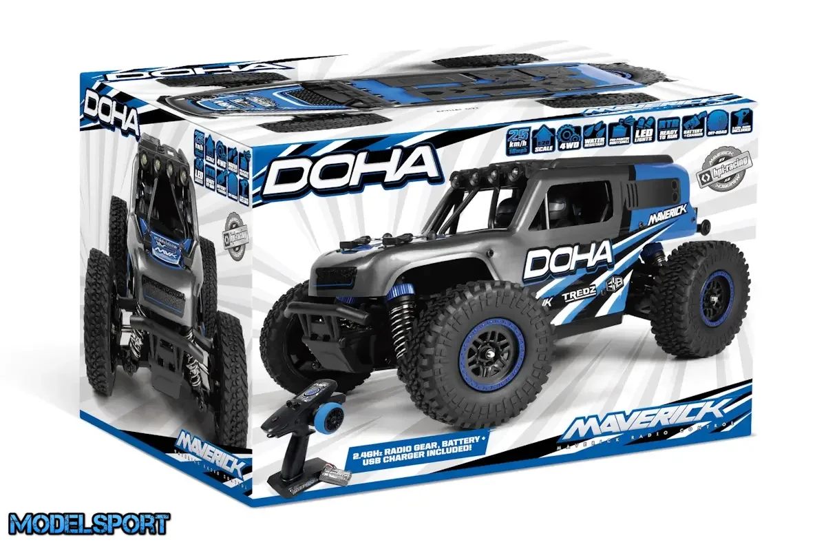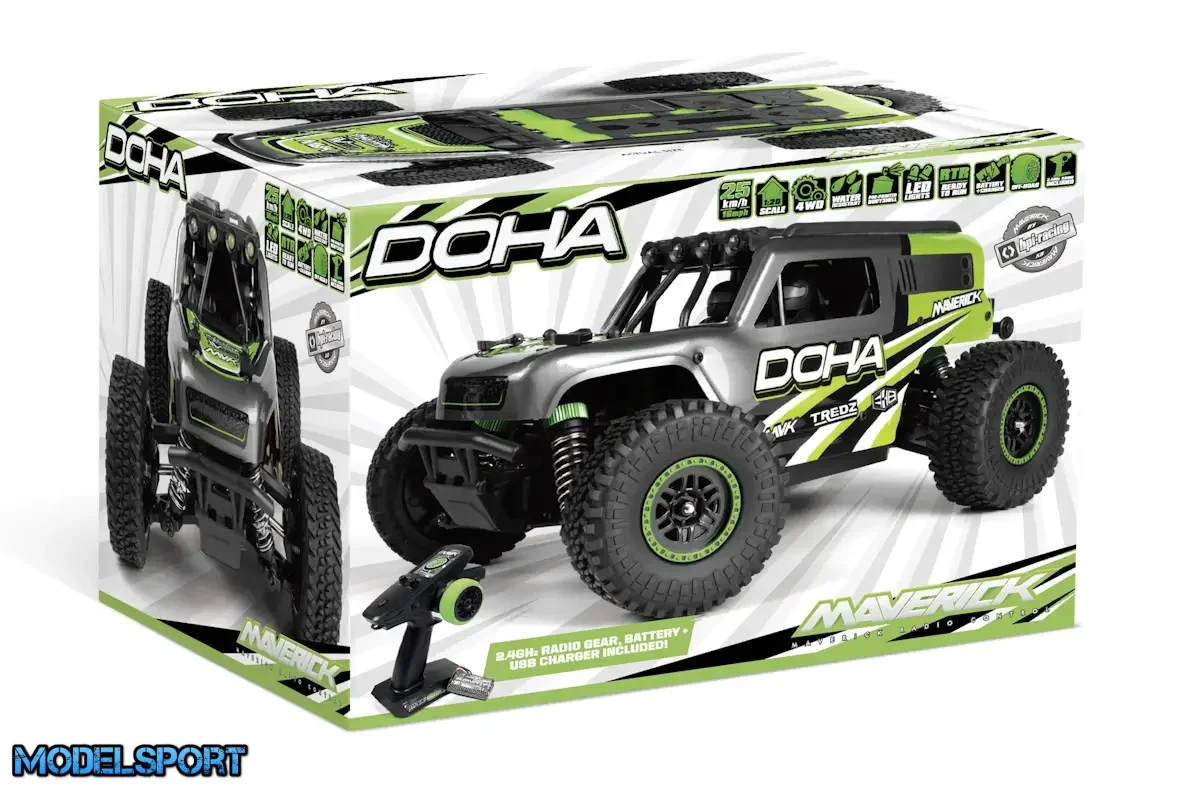 Inkluderet med DOHA er Maverick Element 600mAh Li-ion batteri, en praktisk USB-oplader, MTX-201 2,4GHz radiosystem og den 2-i-1 vandtætte MSRS-201 modtager/hastigheds- og lyscontroller. Derudover er DOHA udstyret med LED-lys på tagburet, hvilket muliggør drift under dårlige lysforhold for længere spilletid efter solnedgang.