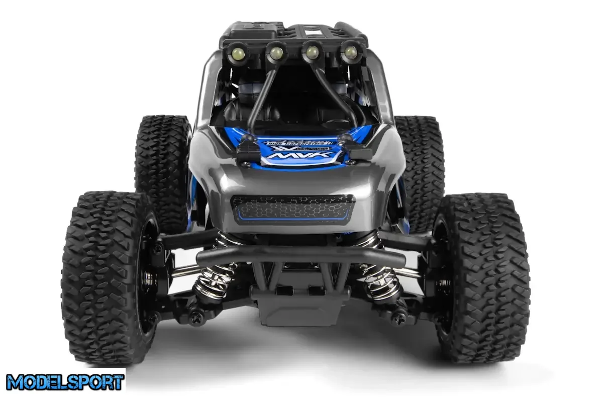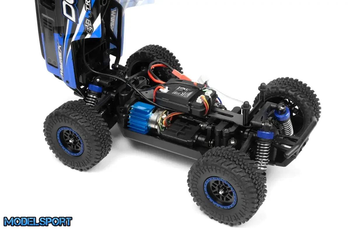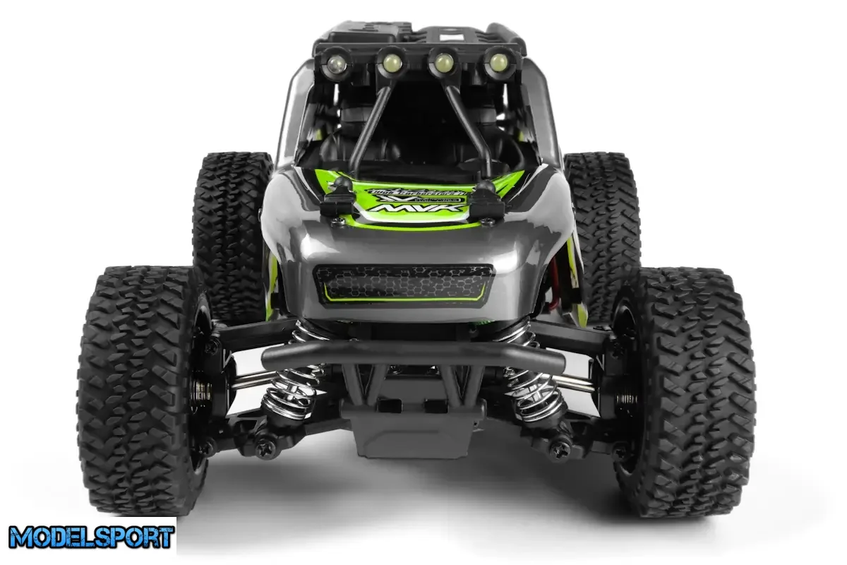 Maverick DOHA er udstyret med den robuste MM-200 370 størrelse motor, der giver chauffører forlænget spilletid og pålidelig ydeevne til timevis af sjov. Køretøjet har for- og baggears differentialer, som er forbundet med en kraftig sekskantet stålaksel. Dette design overfører effektivt kraften fra motoren til de forreste og bageste ståldrivaksler, hvilket giver optimal ydeevne til de gribende gummihjul i alle fire hjørner.