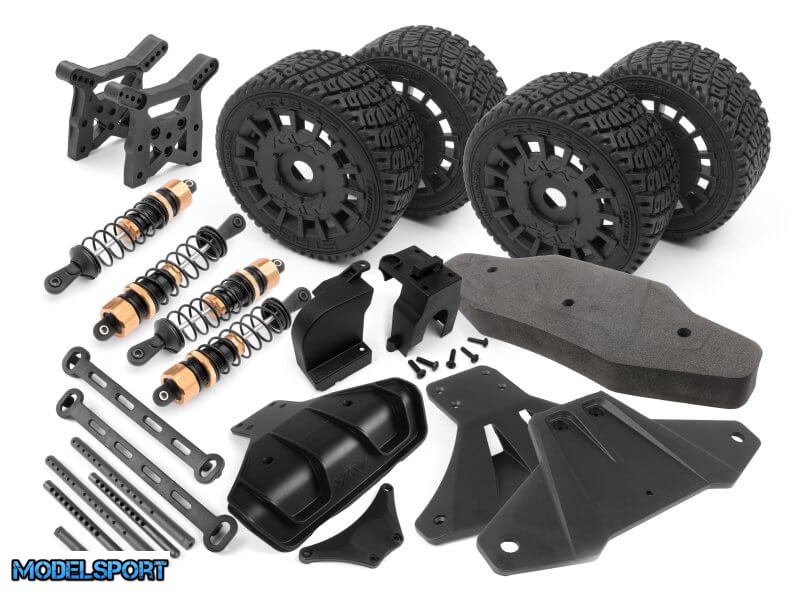 Dette komplette sæt indeholder alle de nødvendige dele til at ombygge din bil til ægte offroad performance. Du får blandt andet øget frihøjde, forbedret beskyttelse af center differentialet mod snavs og småsten samt et rally inspireret karrosseri kombineret med offroad dæk, der sikrer optimalt greb og stabilitet på løst underlag.