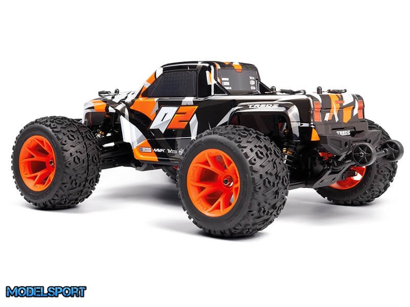 Denne 12 turns, 550 størrelses børstede motorversion fås i klassisk cool Maverick BLUE med sorte hjul eller super lyse ORANGE med fluorescerende orange hjul! Hver Quantum2 MT er udstyret med fungerende for- OG baglygter, inklusive funktionelle bremselys – og du kan tænde eller slukke for dem fra den helt nye controller! Med splinternye hjul og Tredz-dæk vil Quantum2 vende hoveder og øjeblikkeligt imponere dine venner!