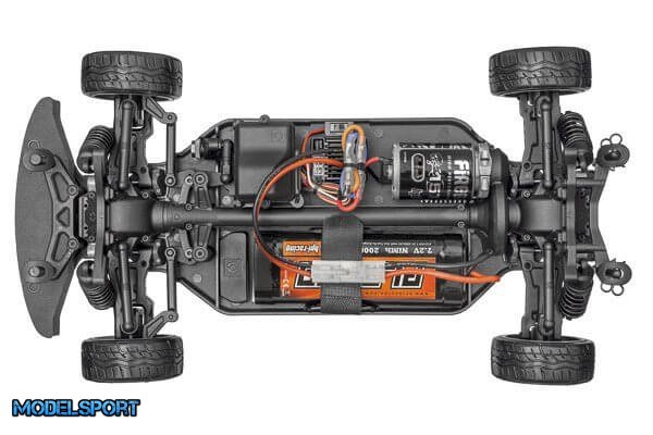 Under motorhjelmen er denne drift maskine i 1/10 skala udstyret med det nyeste HPI Racing Touring Car chassis, Sport 3. Med fuldtids akseldrevet 4WD, en fuldt forseglet drivlinje, vandtæt 2,4 GHz elektronik/radio gear, fuldt uafhængig dobbelt bærearm affjedring og justerbare oliefyldte støddæmpere, den er klar til at køre under alle forhold.