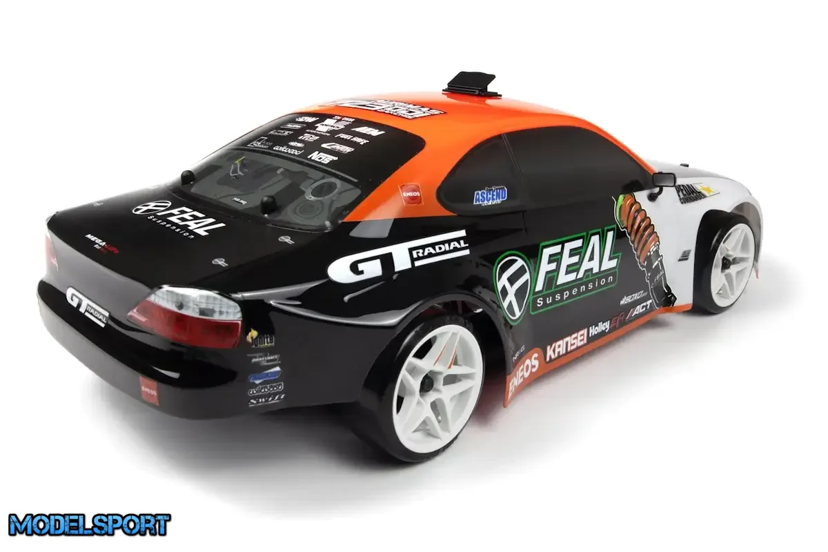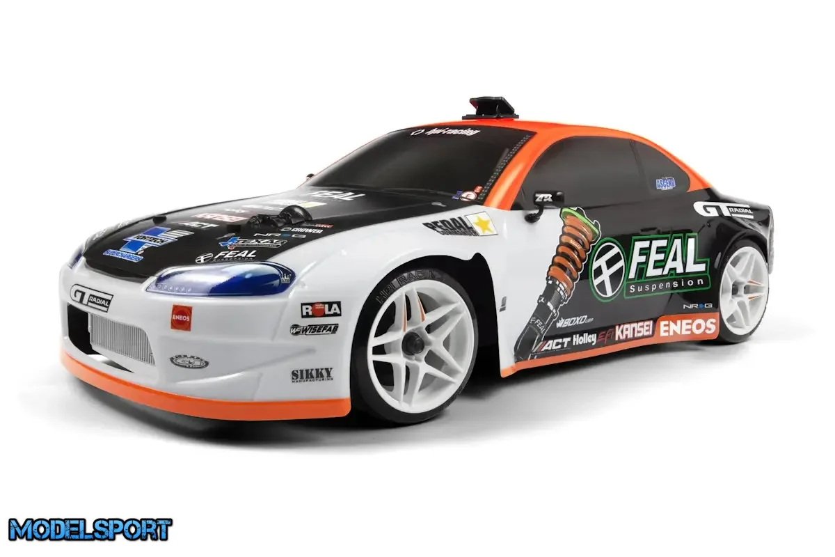 For at fejre denne utrolige præstation introducerer HPI et helt ny, officielt licenseret HPI Racing Nissan S15 Widebody 200 mm Karosseri, genskabt med Feal Suspension Race Teams slående 2023/2024-livry i 1:10. Dette meget detaljerede Nissan Silvia S15 karosseri er parret med et komplet sæt splinternye Kansei Astro fælge i hvid, hver pakket ind i HPI Racing T-DRIFT Slick drift dæk, så du kan begynde at glide, så snart du trykker på gashåndtaget.