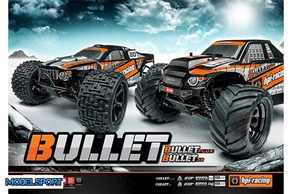 Under den splinternye maling har Bullet Flux en robust 8-chok dobbelt-ønskebensophæng, robust akseltræk, metalgear diff og pålideligt 2,4 GHz radiosystem. Alt du behøver at levere er en batteripakke - og nerver af stål til at styre den kraftfulde Bullet Flux!