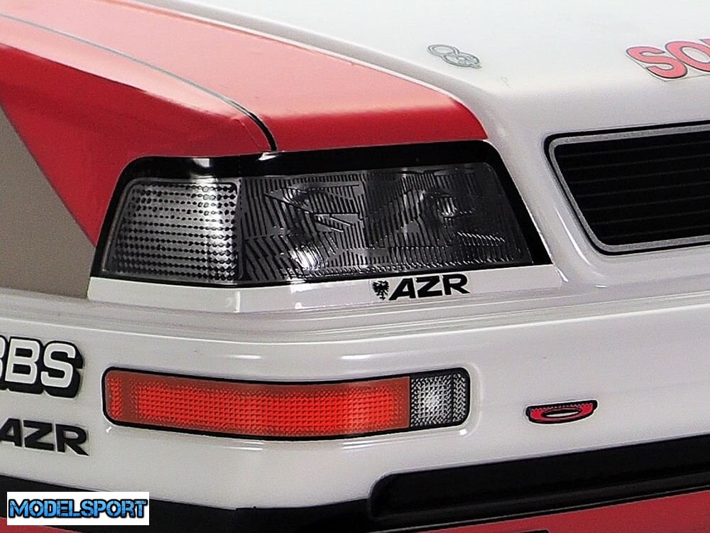 • Der medfølger klistermærker for at genskabe markeringerne for den nr. 45-bil, der blev kørt af 1991-mesteren Frank Biela. Vindues maskerings klistermærker inkluderet for at hjælpe med malings processen.