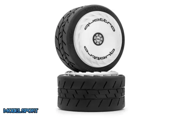 Ikke alene er e-tron en af ​​vores mest ambitiøse og detaljerede karrosserier, vores designere har fanget hver eneste detalje, helt ned til de Quattro prægede racerhjul. Omkring disse skønheder er et sæt gummidæk med slidbane for maksimalt greb på næsten alle asfalterede overflader. Du får fremragende accelerations-, bremse- og kurveydelse fra disse semi glatte gummidæk med greb!