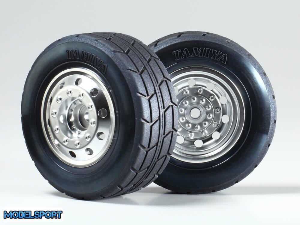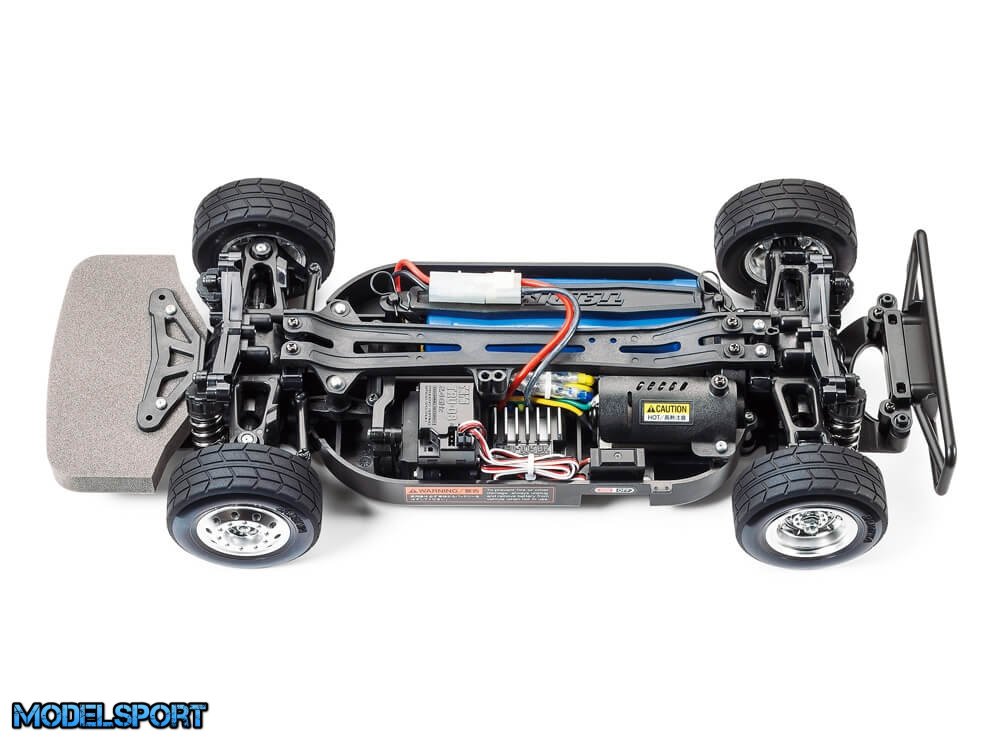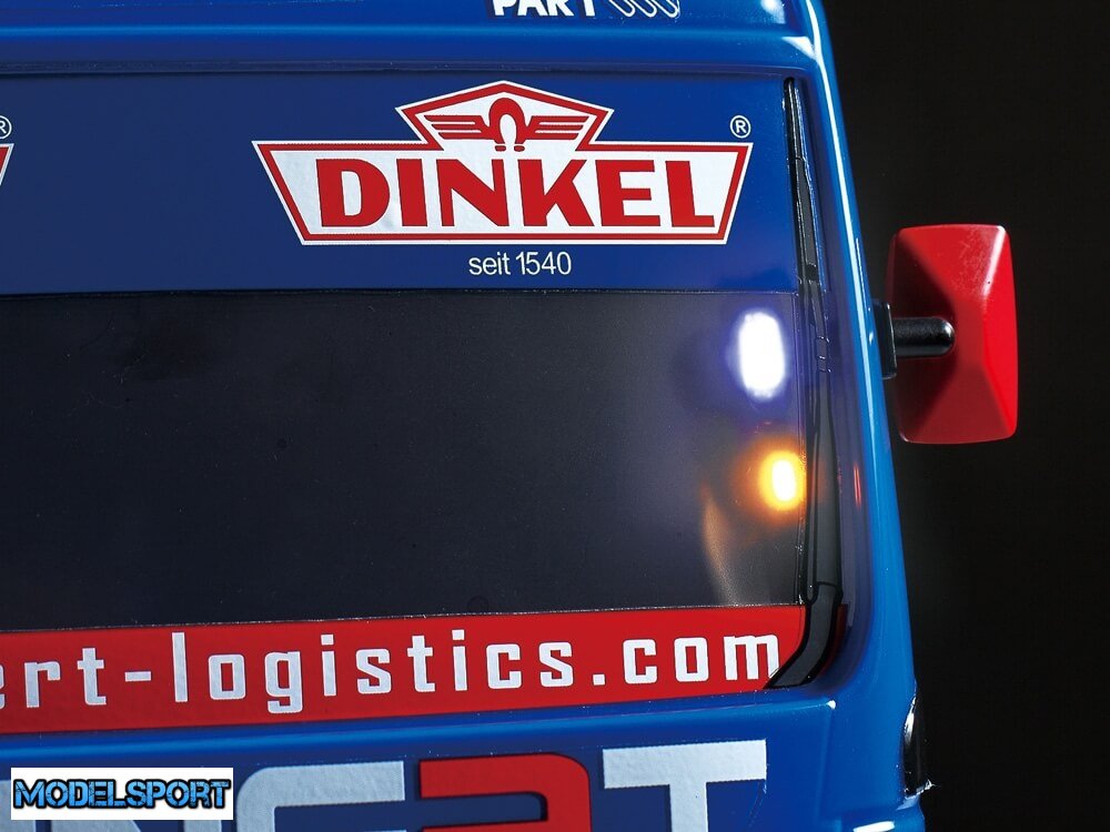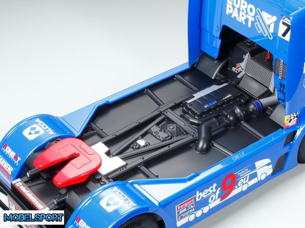 Klistermærker er inkluderet i sættet for at genskabe lastbilens talrige sponsormærker og logoer osv. TT-01 Type-E chassiset er en gennemprøvet performer, og her er udstyret med dedikerede racerbilmodeller hjul og dæk.