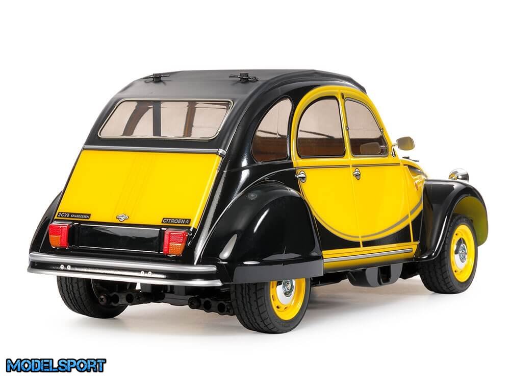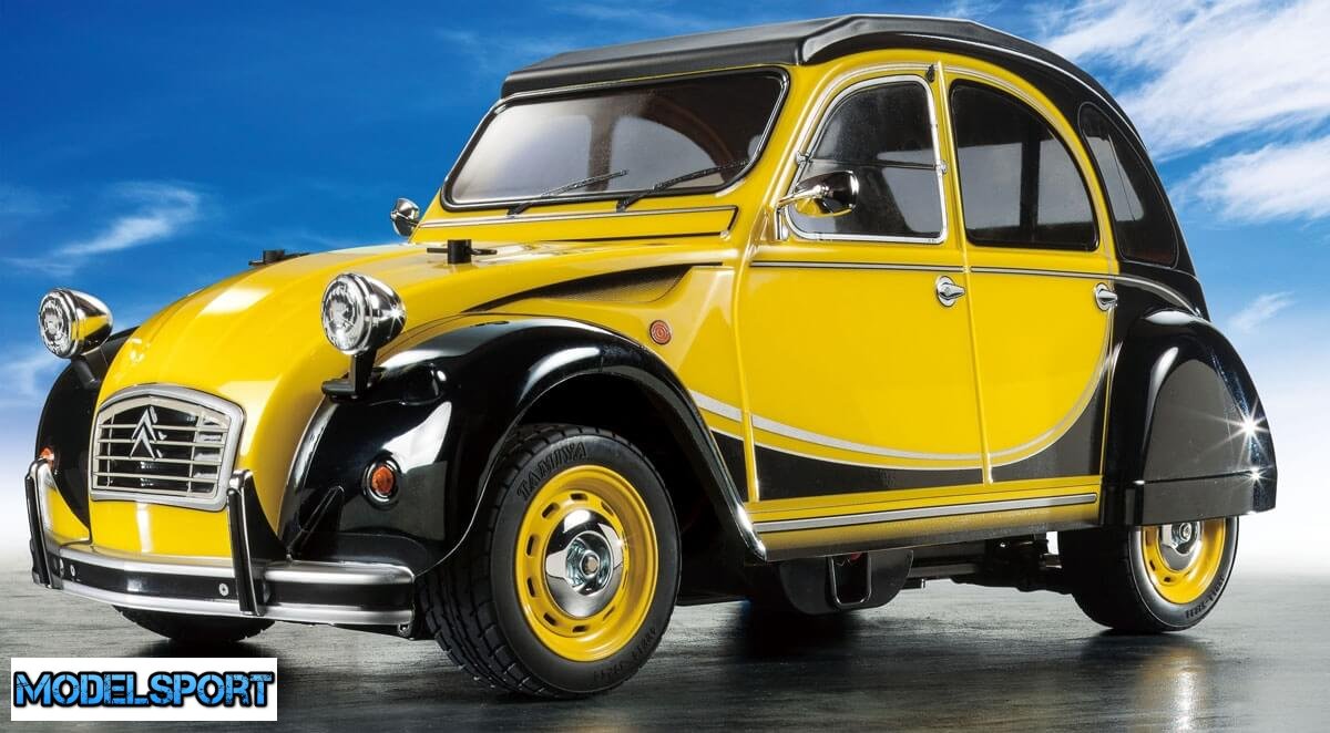 Denne Fjernstyret model genskaber trofast den verdens kendte Citroën 2CV Charleston. Polycarbonat karosseriet sidder oven på Tamiyas sjove M-05 forhjuls drevne chassis.