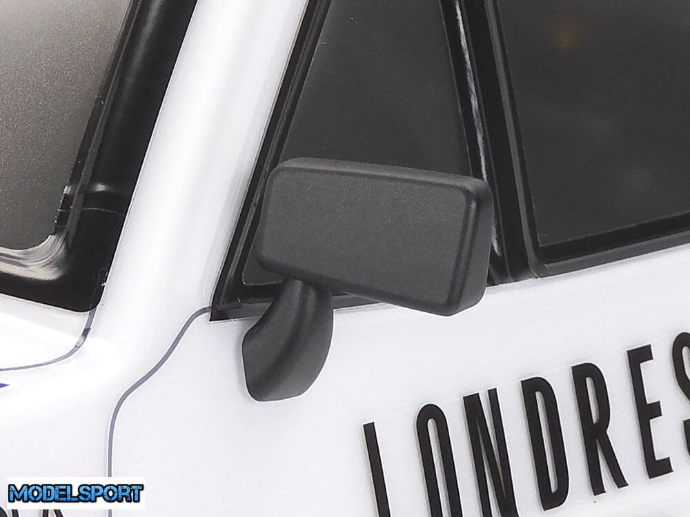 • Separat støbte plastik komponenter er inkluderet for at genskabe kofanger, sidespejle og tågelygter.