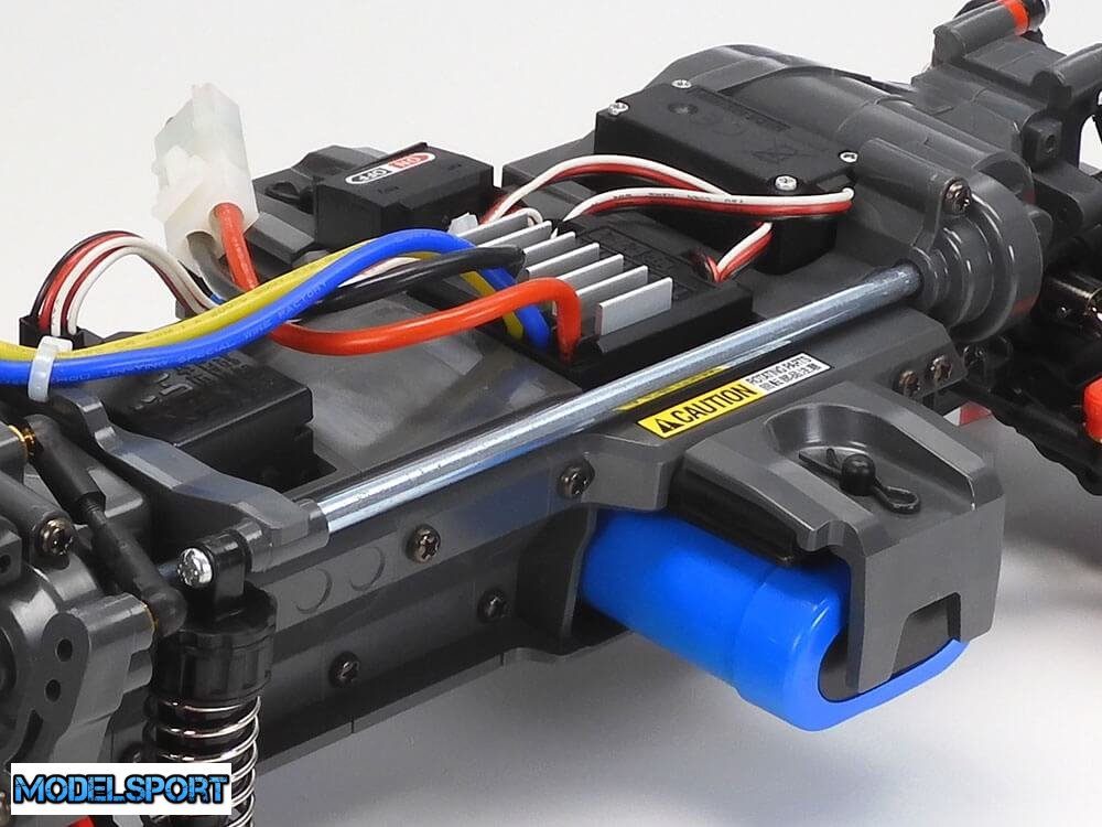 Den har en bagmonteret motor med gear drevne baghjul og en propelaksel, der tager kraften til fronten. Både for- og baggearkasser har differentialegear. Batteripakkens placering i chassisets centrum sikrer fremragende balance, mens 4-hjuls uafhængige dobbelt bærearmsophæng anvender friktionsdæmpere. Rally Block dæk med bredde/diameter på 27/69 mm er også inkluderet.