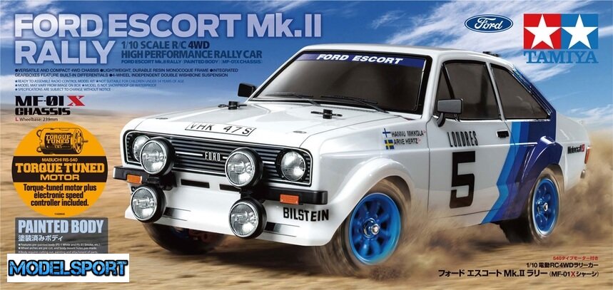 Dette fjernstyret model samlesæt genskaber den klassiske Ford Escort Mk.II i rally racing form. Det var en RAC Rally Champion fra 1975-1979. Det formelle karosseri sidder på toppen af ​​Tamiya MF-01X chassiset, der står både på asfalt og flade snavsoverflader.