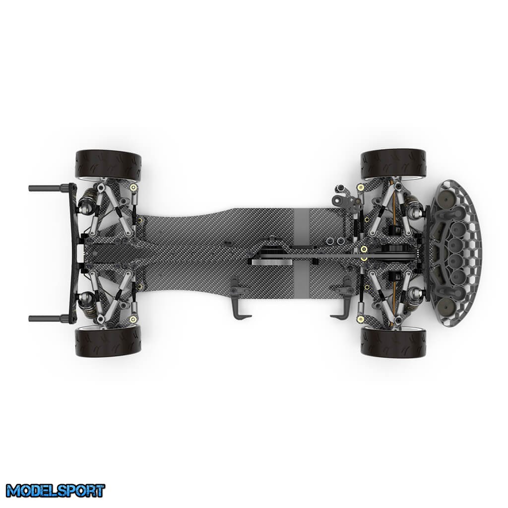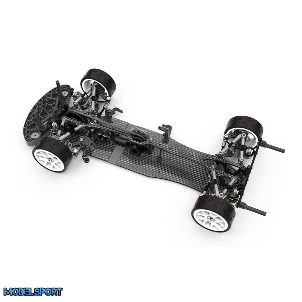 • Fuldt justerbar, affjedringsgeometri, akselafstand, hjul, camber, roll center, ackermann, droop, anti-dive, anti-squat, for og bag tå ind/ud, kørehøjde og meget mere.