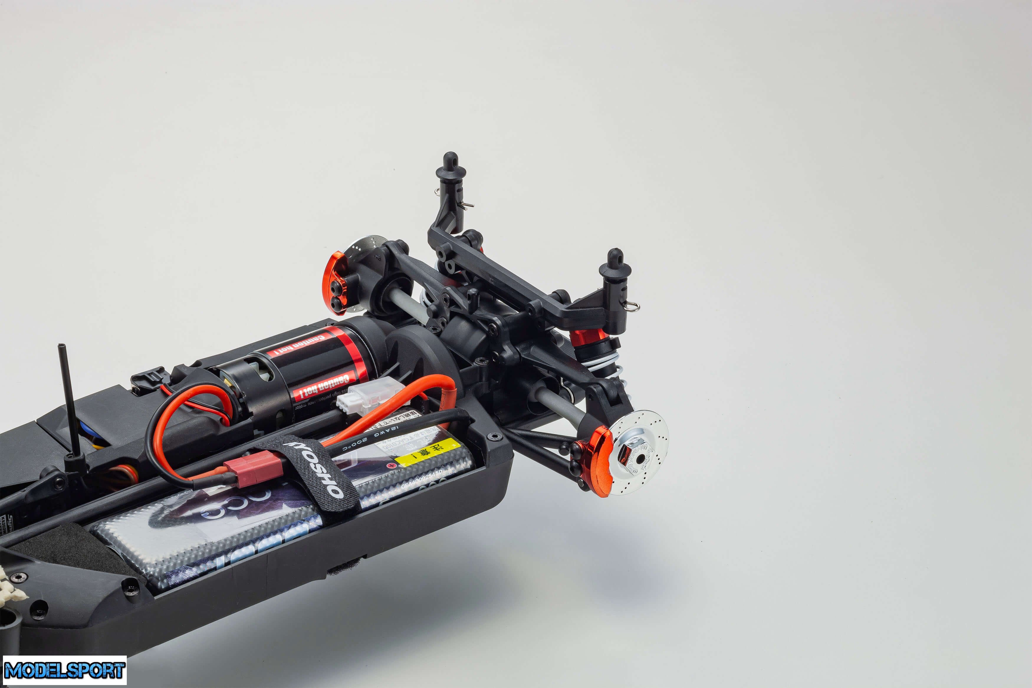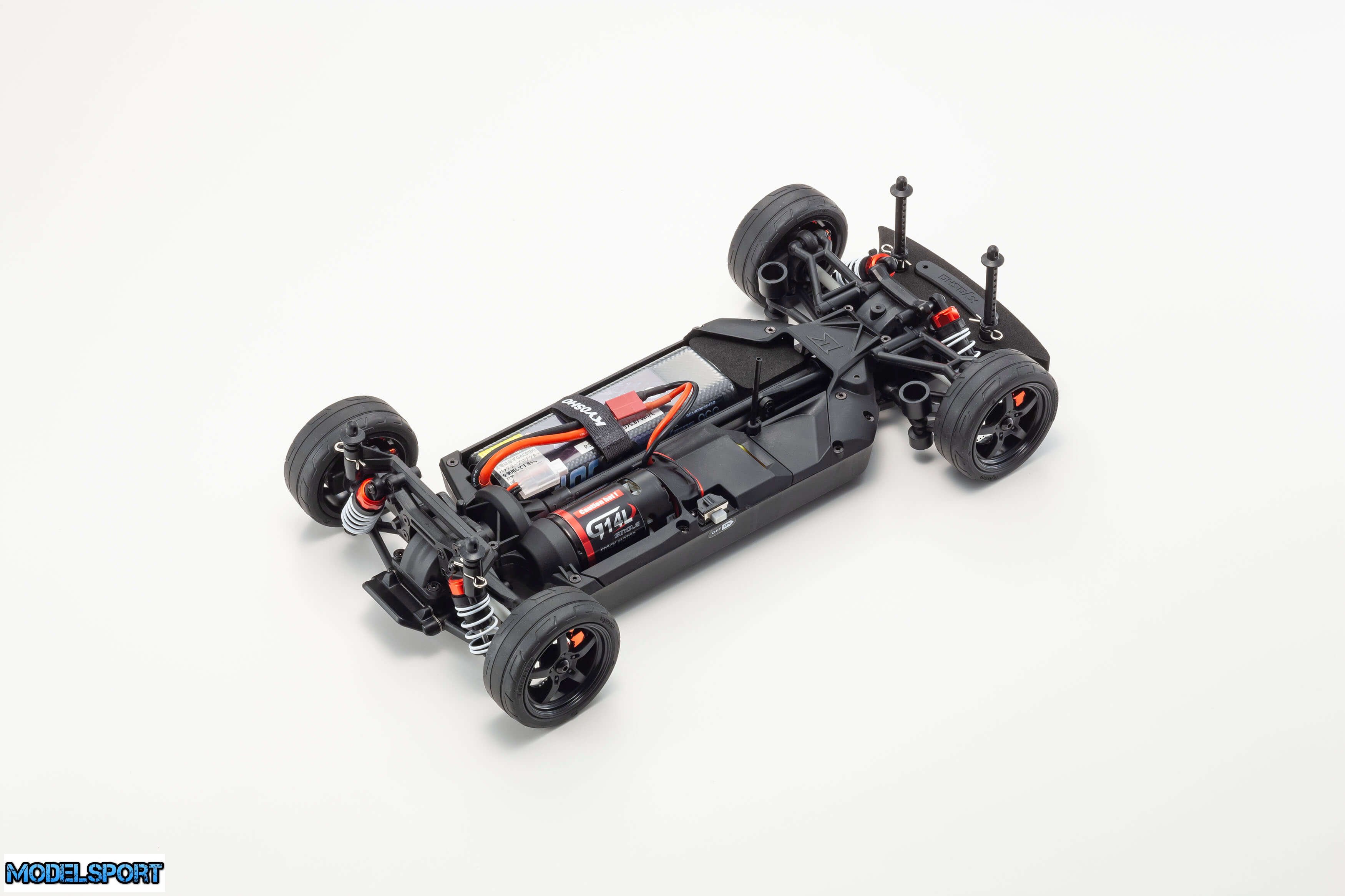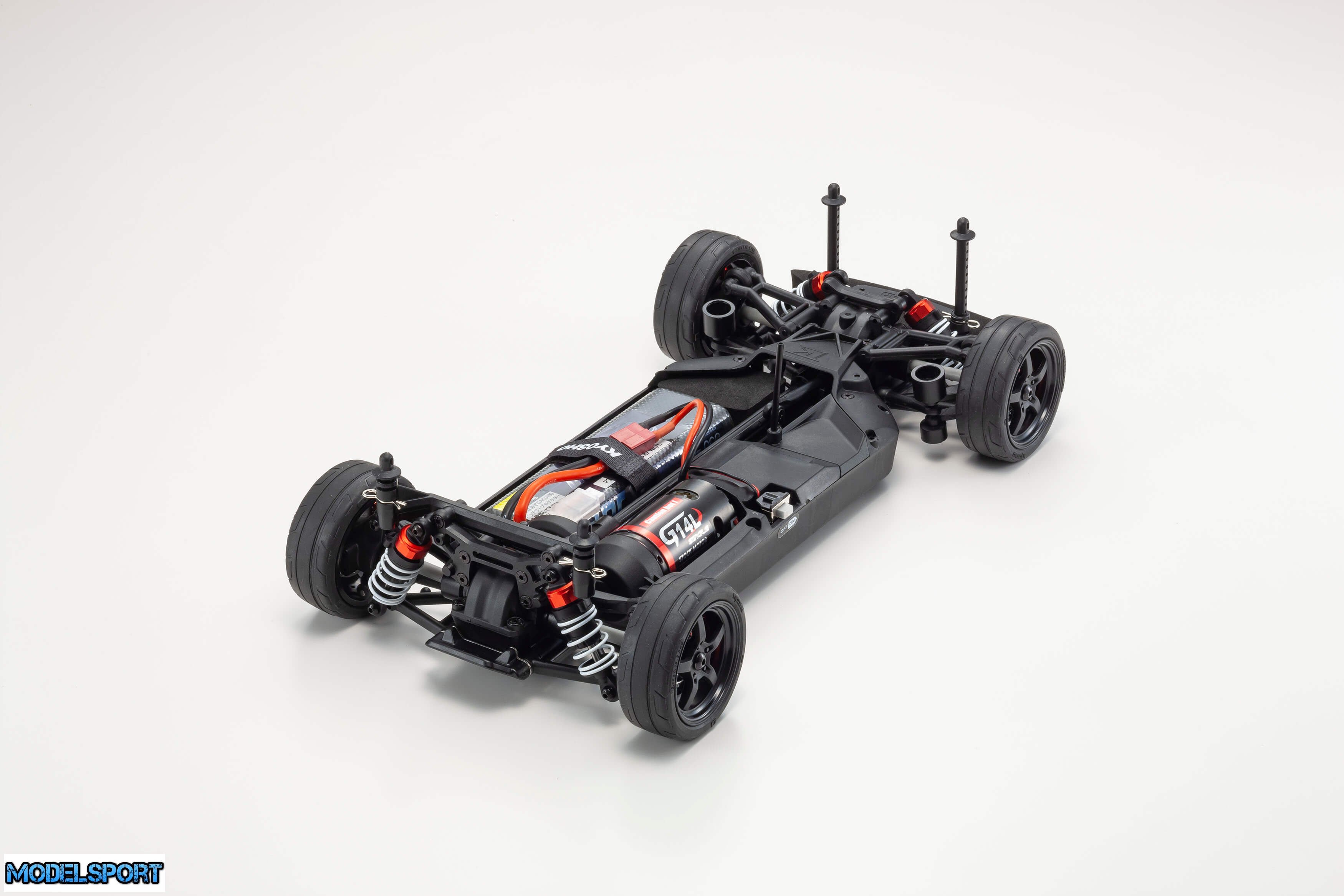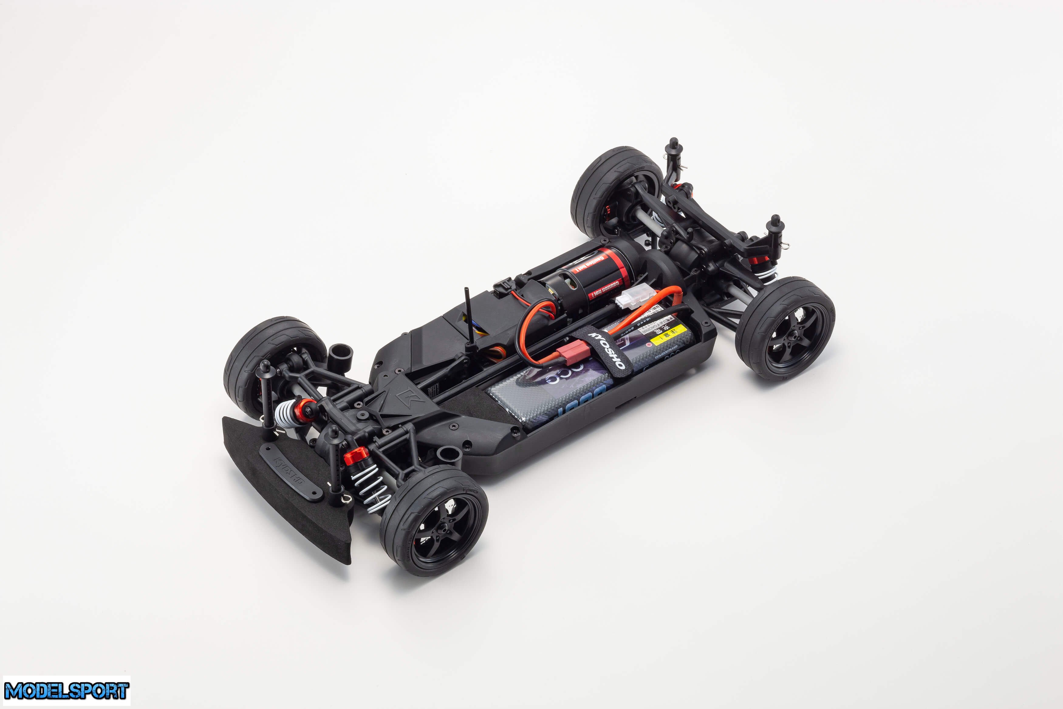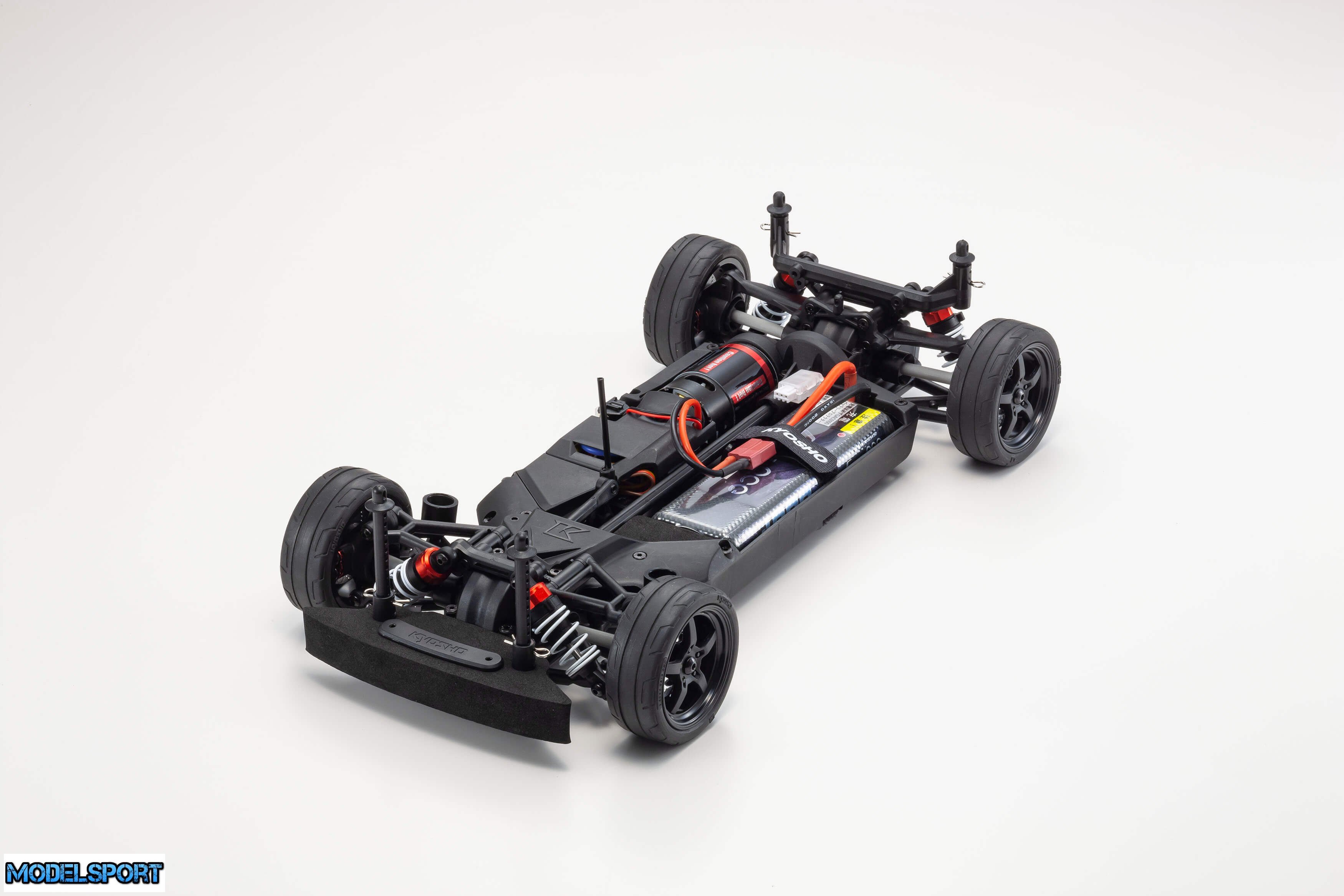 Readyset-pakken leveres færdigsamlet og inkluderer alt undtagen oplader og batteri til chassiset og batterier til senderen.