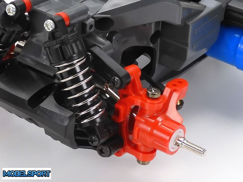 • MF-01X-chassiset er hjemme på vejen eller på fladt snavs, takket være 4-hjulet dobbelt bærearmsophæng.