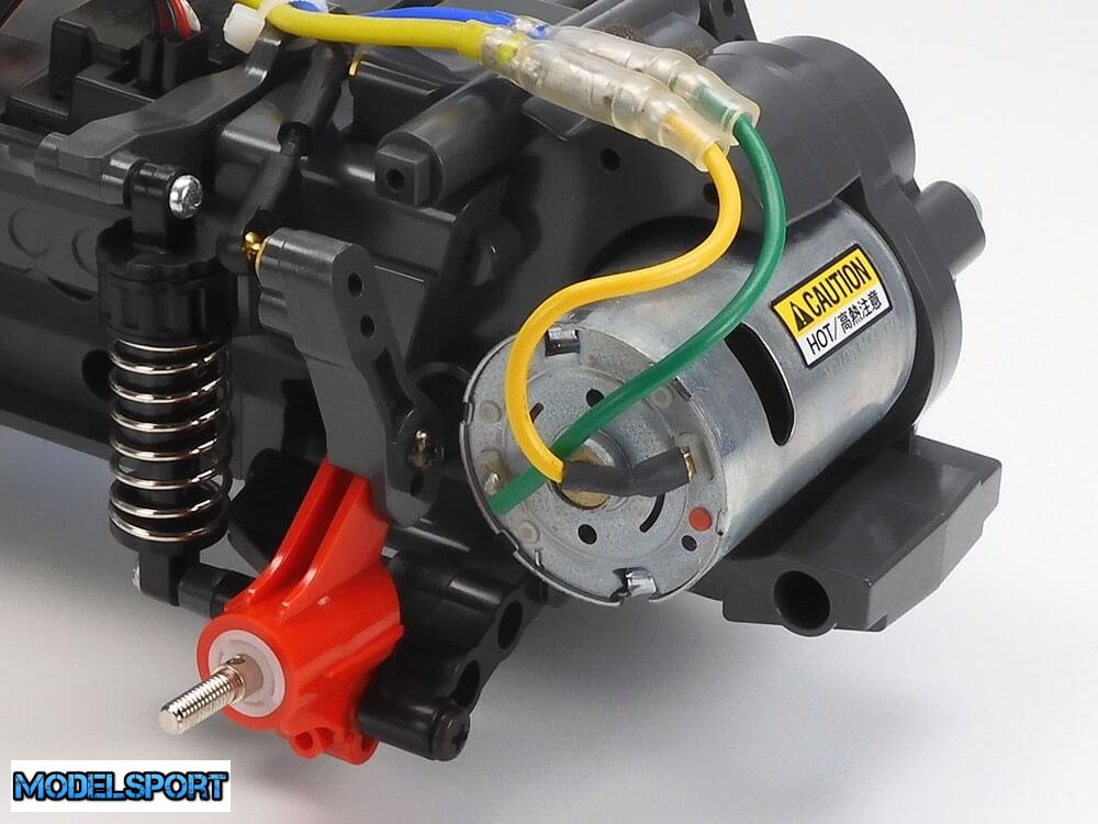 Baseret omkring en robust monocoque ramme med integrerede gearkasser giver dette kompakte 4WD chassis en spændende køretur, uanset om du tager den på vej eller flade jordoverflader. Den har en bagmonteret motor med gear drevne baghjul og en propelaksel, der tager kraften til fronten. Både for- og baggearkasser har differentialegear. Batteripakkens placering i chassisets centrum sikrer fremragende balance, mens 4-hjuls uafhængig dobbelt bærearmsophæng anvender friktionsdæmpere.
