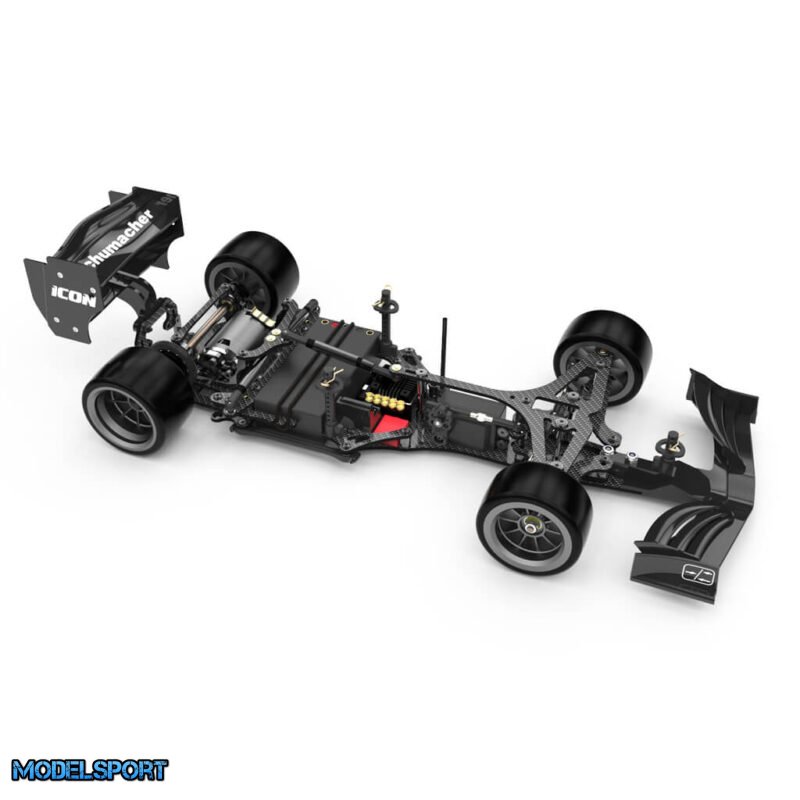Efter en lang række succeser i flere elektriske racing klasser, inklusive et dobbelt LMP12 verdensmesterskab, har Schumachers ingeniørhold anvendt deres ekspertise på formelklassen. Resultatet er Icon, en innovativ ny tilgang til RC Formula racing. Icon er designet til maksimal traction bag for at gøre det til en let at køre bil, men opretholder masser af styring for at tilfredsstille de mest krævende chauffører. Icon-prototyperne er testet og kørt i stor udstrækning i Storbritannien, Tyskland og Italien og har vist sig at være hurtige og smidige. Icon indeholder alle de justeringer, du har brug for, for at være hurtig på 110 tæppe- og asfaltbaner.
