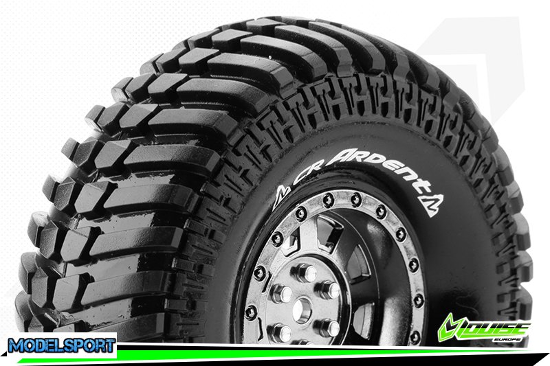 Louise RC - CR-ARDENT - 1-10 Crawler Tire Set - Mounted - Super Soft - Black Chrome 1.9 Wheels - Hex 12mm - L-T3232VBC