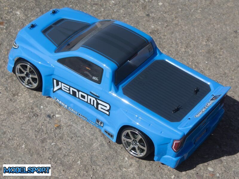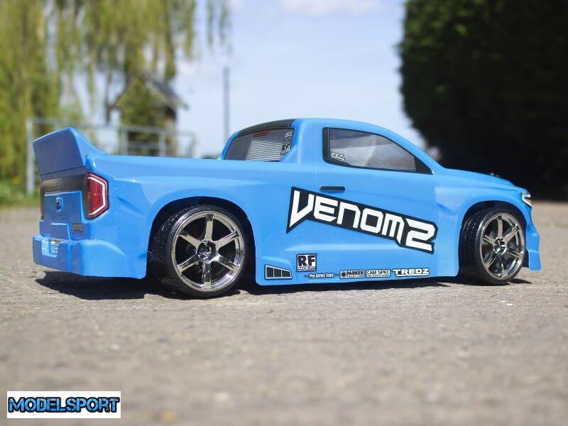 Venom 2, med en bredde på 200 mm, er designet til at rumme størstedelen af ​​moderne touring car chassiser. Karrosserierne fra HPI er fremstillet af robust klar polycarbonat - et materiale kendt for sin høje trækstyrke og holdbarhed. På trods af dets styrke bevarer dette materiale fleksibiliteten, hvilket gør det til det bedste valg for højkvalitets RC karosseri.