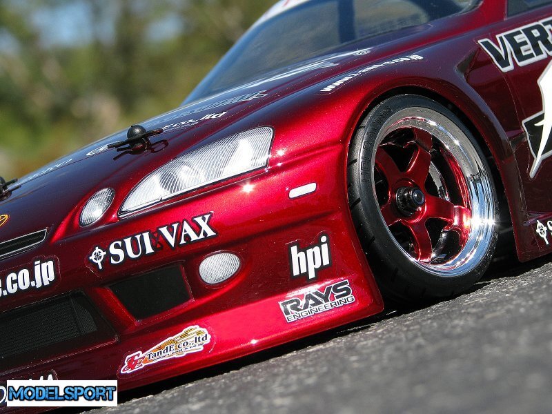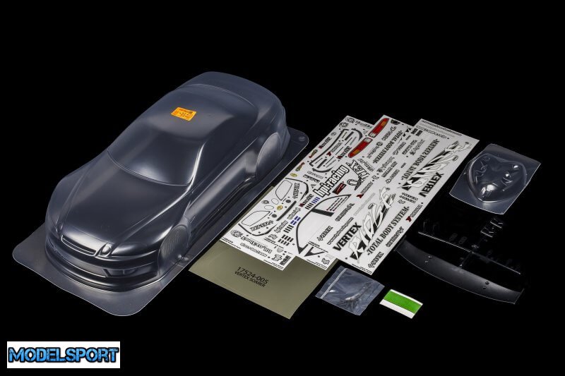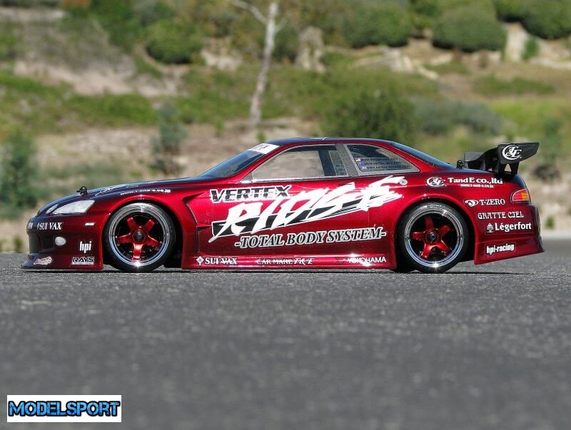 Drift fans kan nu få en nøjagtig kopi af den berømte Vertex Ridge Toyota Soarer drift maskine fra HPI Racing. Dette 200 mm karosseri kommer med to store mærkatark, der har alle de officielt licenserede logoer, så du kan lave en kopi af den rigtige bil. Alle mærkaterne er forskåret for nem påføring. Malingsmasker til vinduerne, en støbt nylon GT bagvinge og beskyttende overspray film medfølger også.
