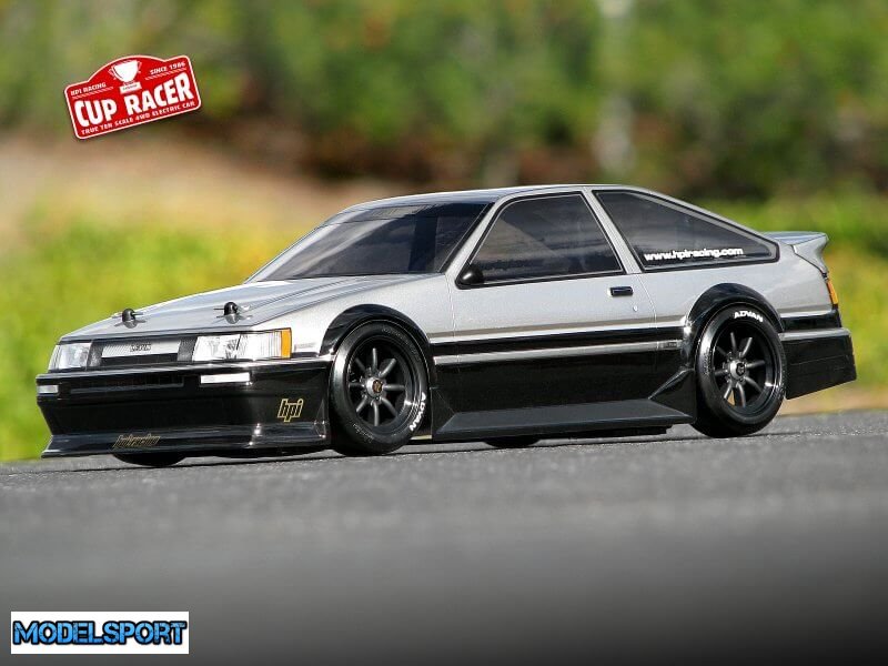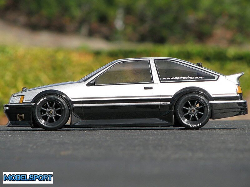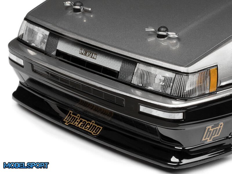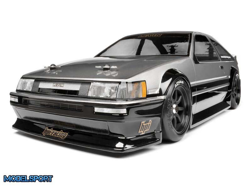 Som alle HPI karosserier kommer Toyota Corolla Levin med en klar beskyttende oversprayfilm, vinduesmasker og et stort mærkatark. Fremstillet af fleksibel vinyl, der passer til enhver kurve på karosseriet, indeholder mærkatet officielle Toyota- og HPI mærkater, forlygter, baglygter og dørhåndtag, plus officielle HPI Racing-logoer! Karosseriet har også boresteder, der er markeret til HPI Cup Racer biler, hvilket gør det nemt at opstille karrosseri beslaget og antennehullerne.