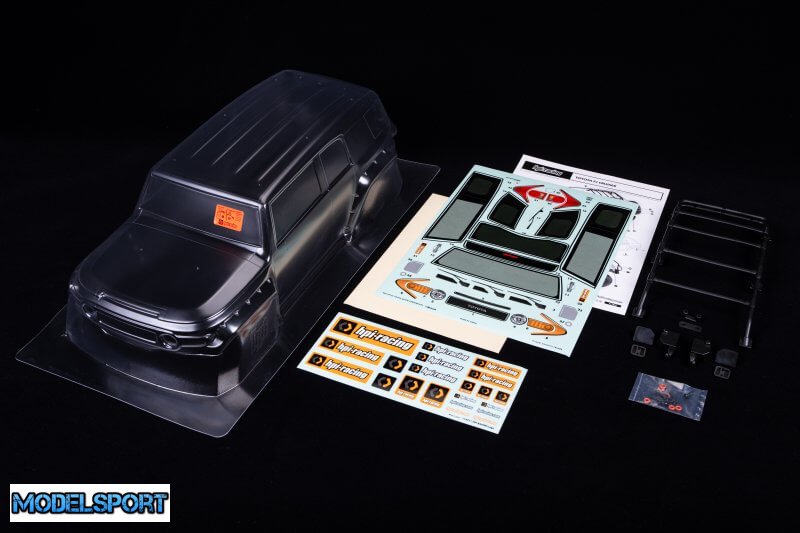 Som alle HPI karosserier kommer FJ Cruiser med en klar beskyttende overspray film, brugervenlige vinyl vinduesmasker og et stort forskåret mærkatark. Det enorme vinyl forudskårne mærkat kommer med alle de officielle Toyota- og FJ Cruiser logoer, forlygter, baglygter, blinklys og mere, plus et komplet sæt tonede ruder, gitre, ventilationsåbninger og mere!
