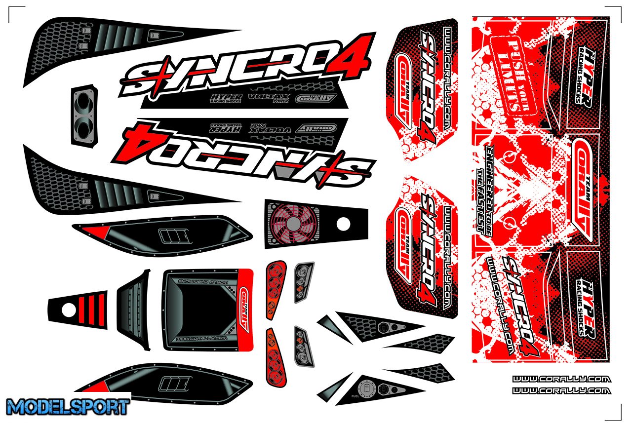Team Corally - Body Decal Sheet - Syncro 4 - Pre-Cut - Red Color - 1 Pc