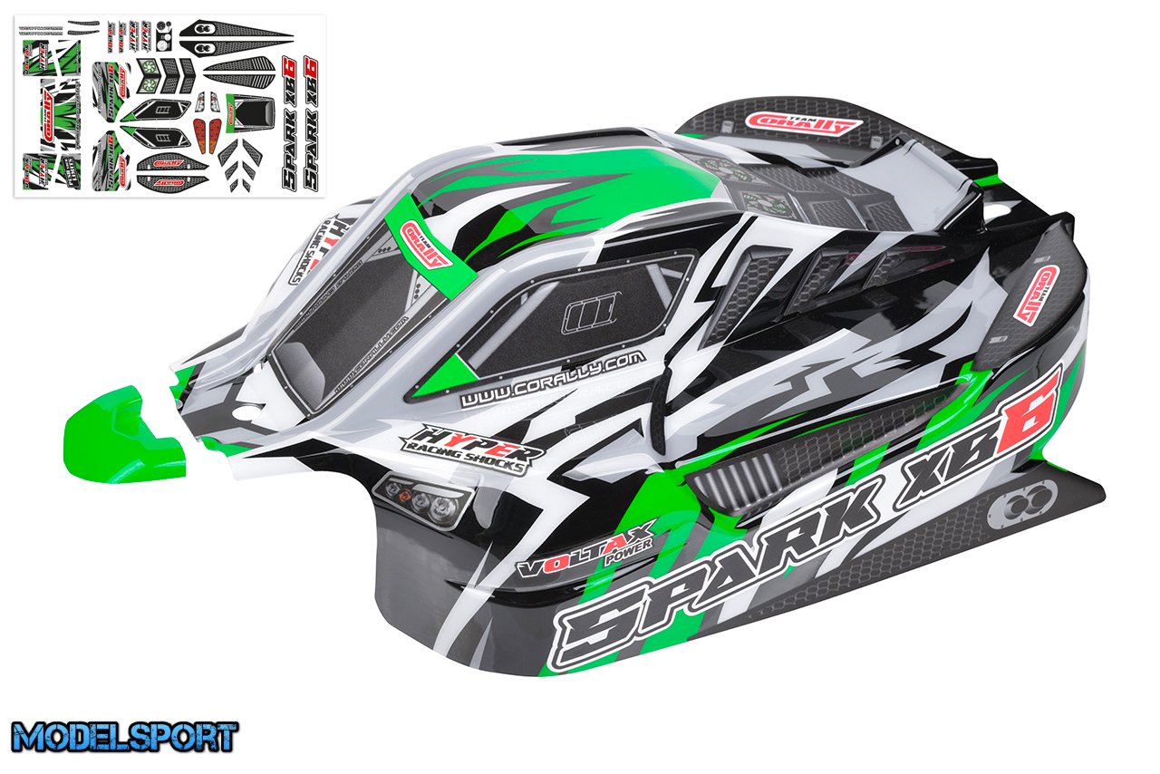 Team Corally - Polycarbonate Body - Spark XB6 - Painted - Cut - Decals - Color Green - 1 Pc