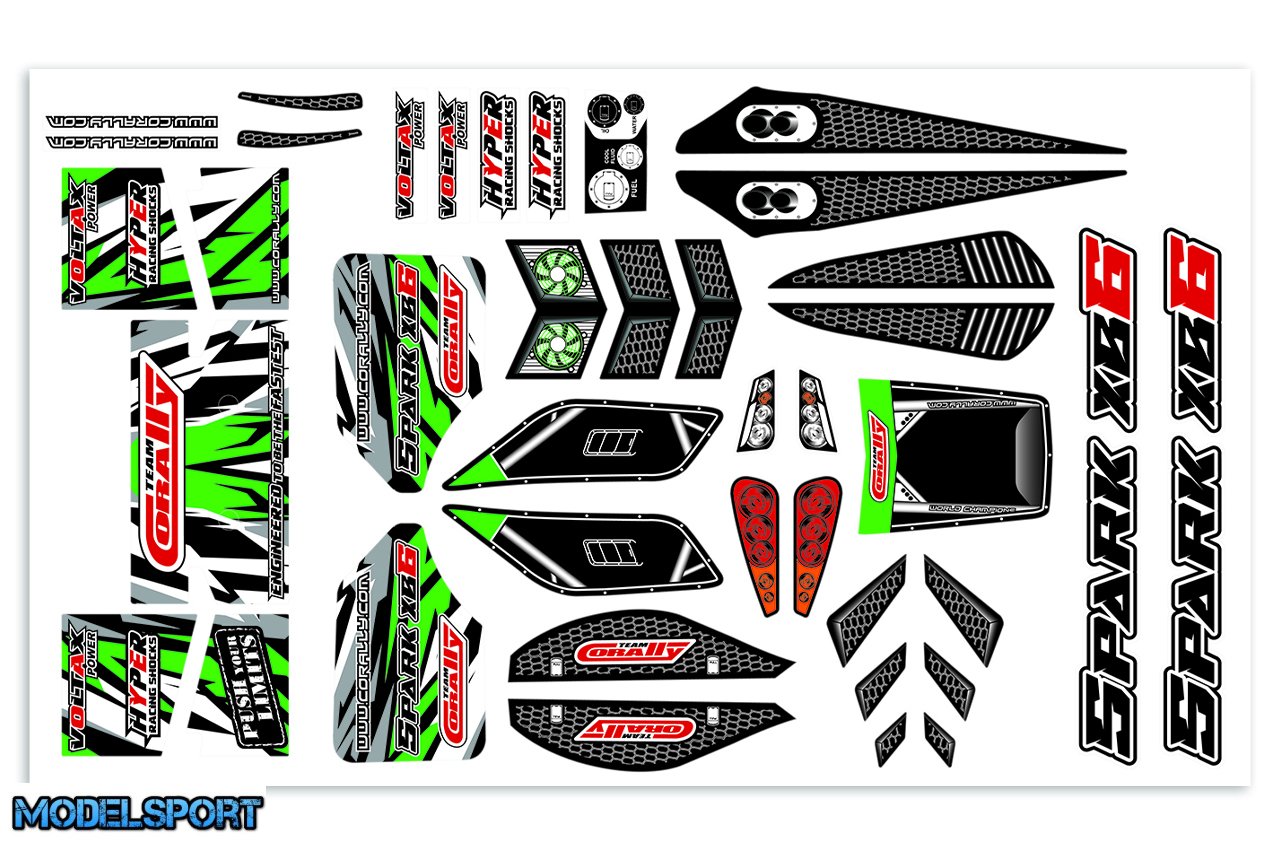 Team Corally - Body Decal Sheet - Spark XB6 - Pre-Cut - Green Color - 1 Pc