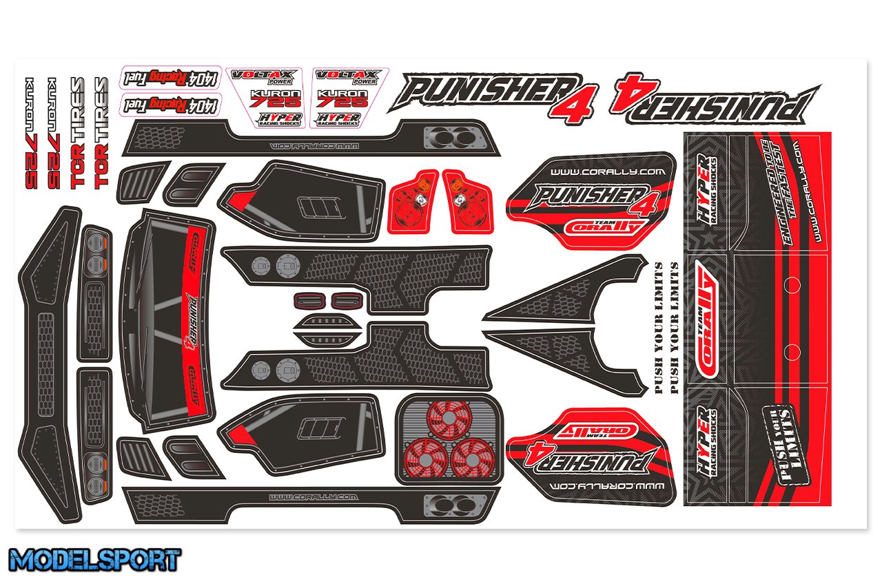 Team Corally - Body Decal Sheet - Punisher 4 - Pre-Cut - Color Red - 1 Pc