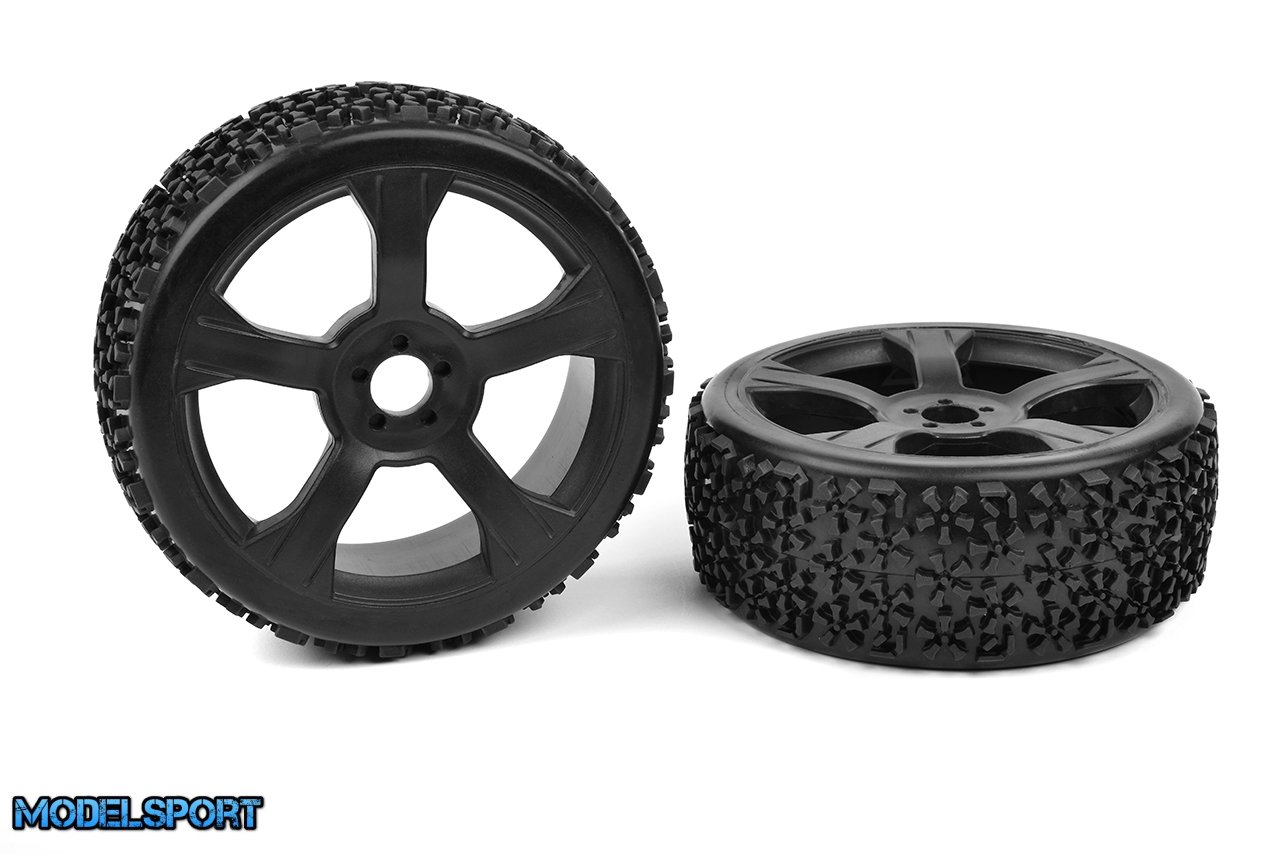 Team Corally - 1-8 Buggy Tires - Ninja - Low Profile - Glued on Black Rims - 1 pair