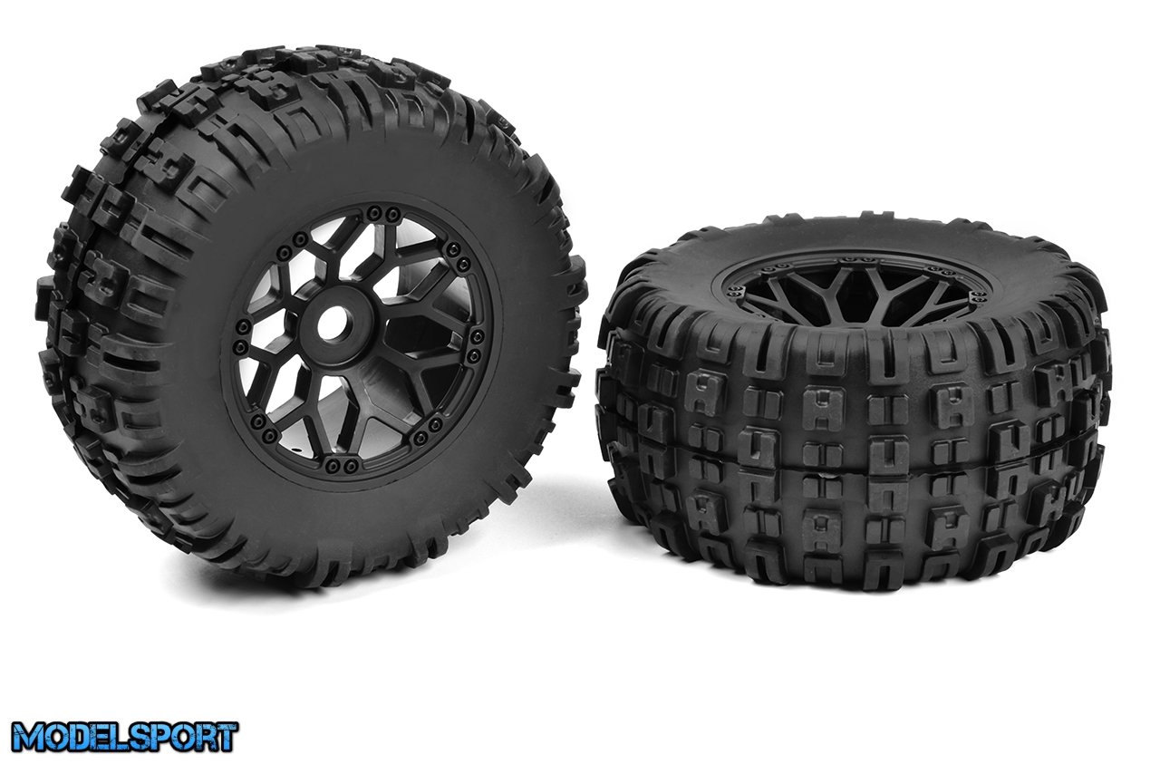 Team Corally - 1-8 MT Tires - Mud Claws - Glued on BBS Rims - Black - 1 Pair