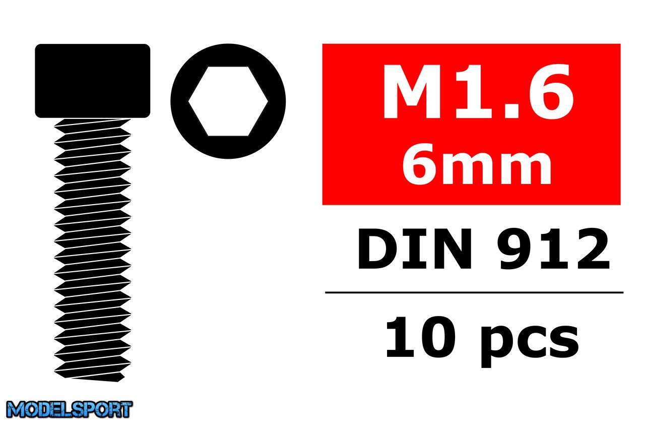 Team Corally - Steel Screws M1,6 x 6mm - Hex Socket Head - 10 pcs