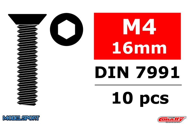Team Corally - Steel Screws M4 x 16mm - Hex Flat Head - 10 pcs