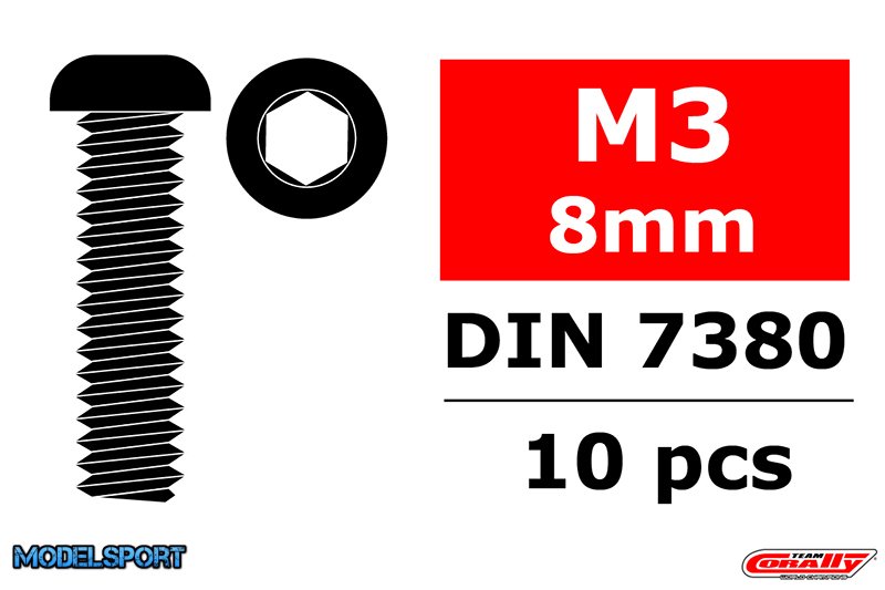 Team Corally - Steel Screws M3 x 8mm - Hex Button Head - 10 pcs