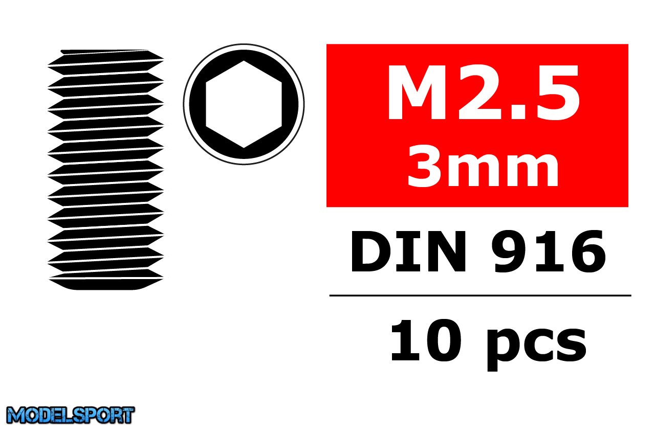 Team Corally - Steel Set Screws M2.5 x 3mm - Hex - 10 pcs