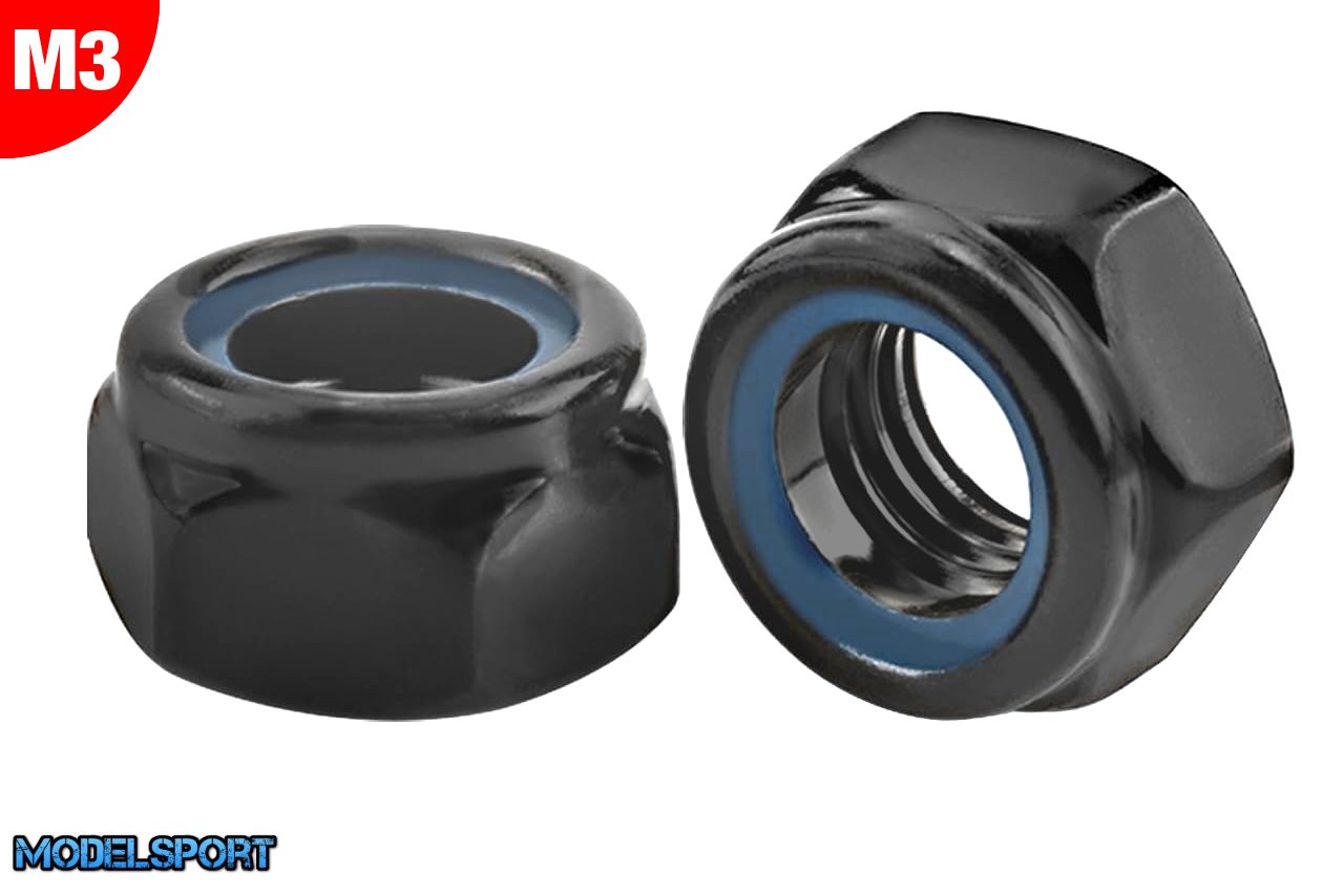 Team Corally - Steel Nylstop Nut M3 - Black Coated - 10 pcs