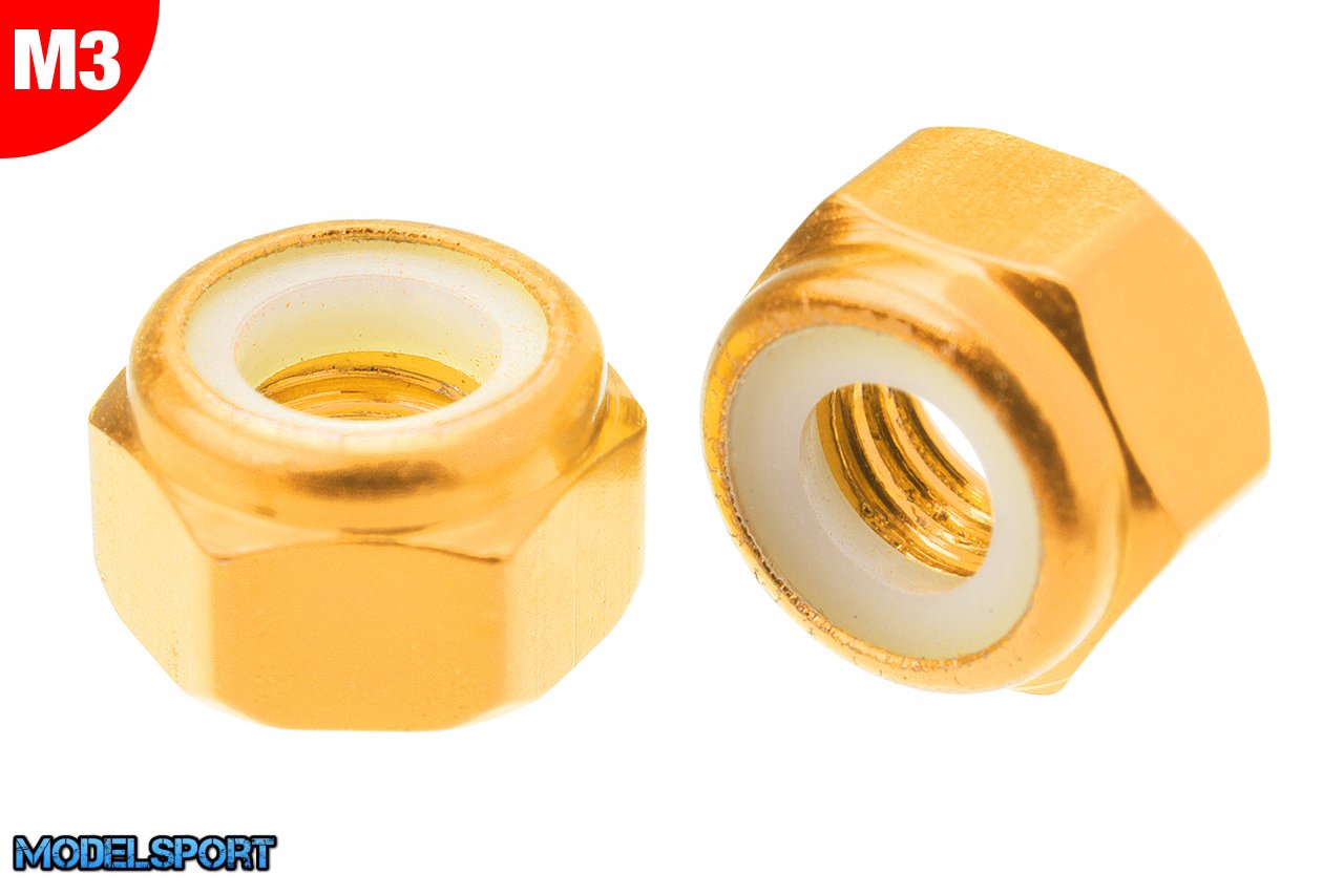 Team Corally - Aluminium Nylstop Nut - M3 - Gold - 10 pcs