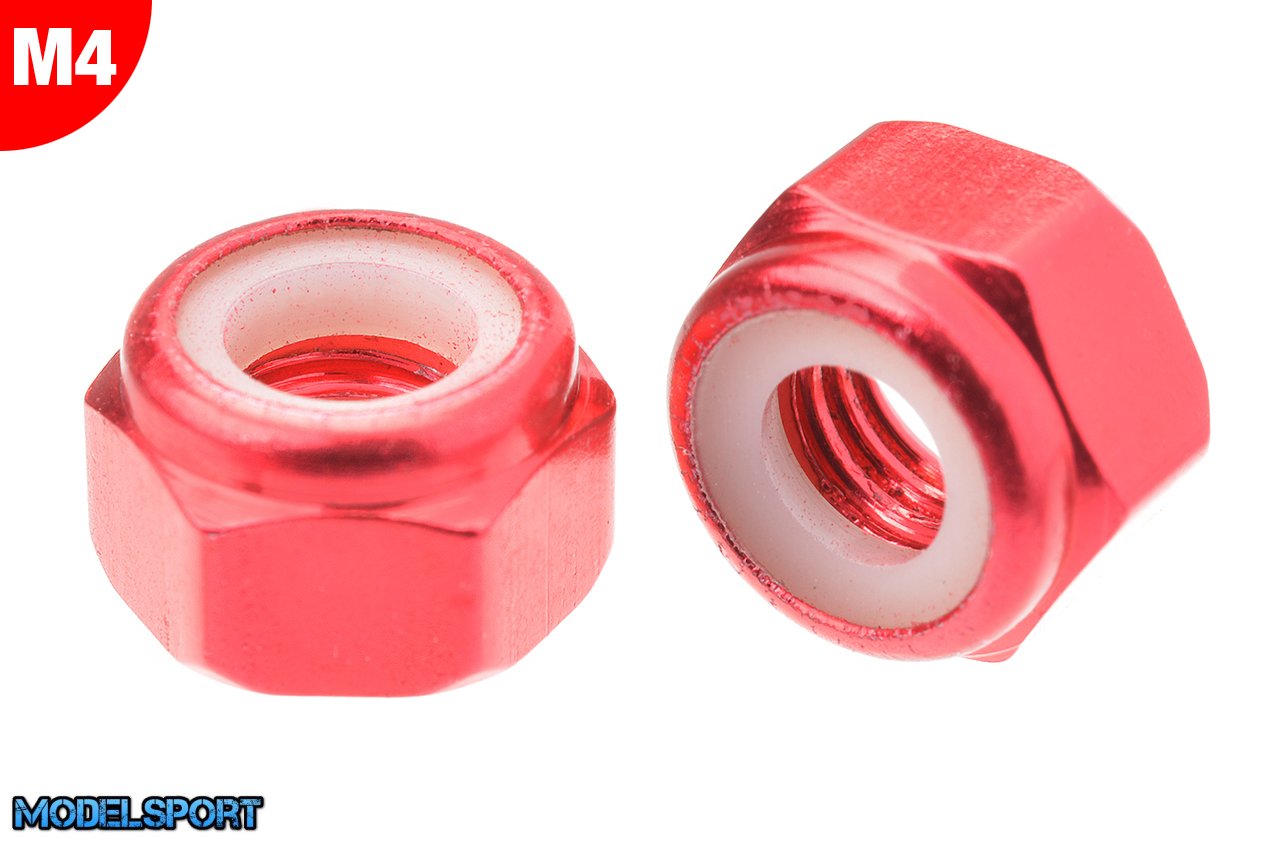 Team Corally - Aluminium Nylstop Nut - M4 - Red - 10 pcs