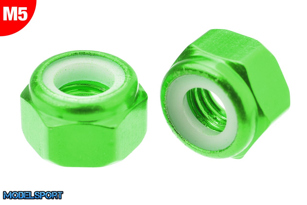 Team Corally - Aluminium Nylstop Nut - M5 - Green - 10 pcs