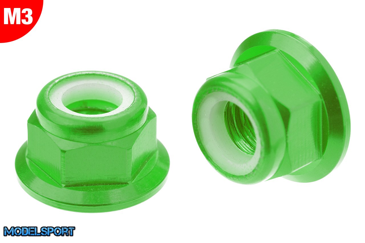 Team Corally - Aluminium Nylstop Nut - M3 - Flanged - Green - 10 pcs