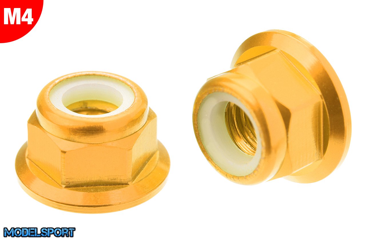 Team Corally - Aluminium Nylstop Nut - M4 - Flanged - Gold - 10 pcs
