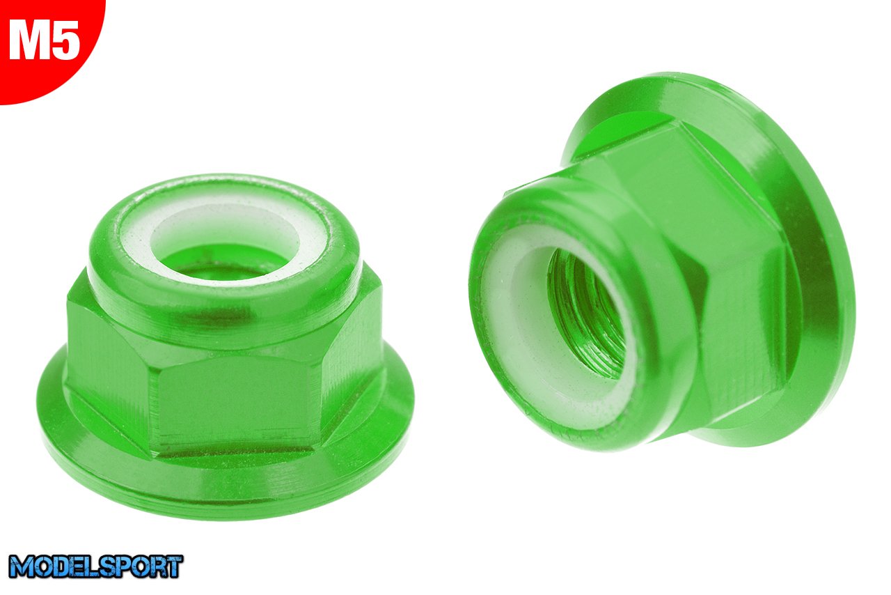 Team Corally - Aluminium Nylstop Nut - M5 - Flanged - Green - 10 pcs
