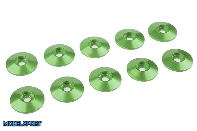 Team Corally - Aluminium Washer - for M3 Button Head Screws - OD=15mm - Green - 10 pcs