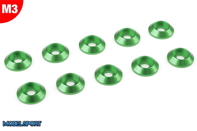 Team Corally - Aluminium Washer - for M3 Button Head Screws - OD=10mm - Green - 10 pcs