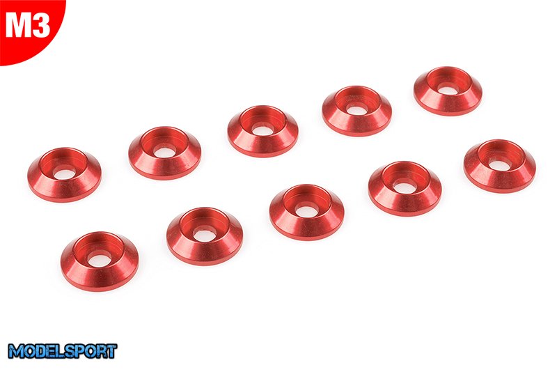 Team Corally - Aluminium Washer - for M3 Button Head Screws - OD=10mm - Red - 10 pcs