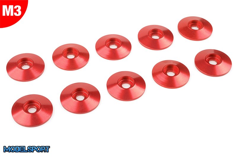 Team Corally - Aluminium Washer - for M3 Button Head Screws - OD=15mm - Red - 10 pcs