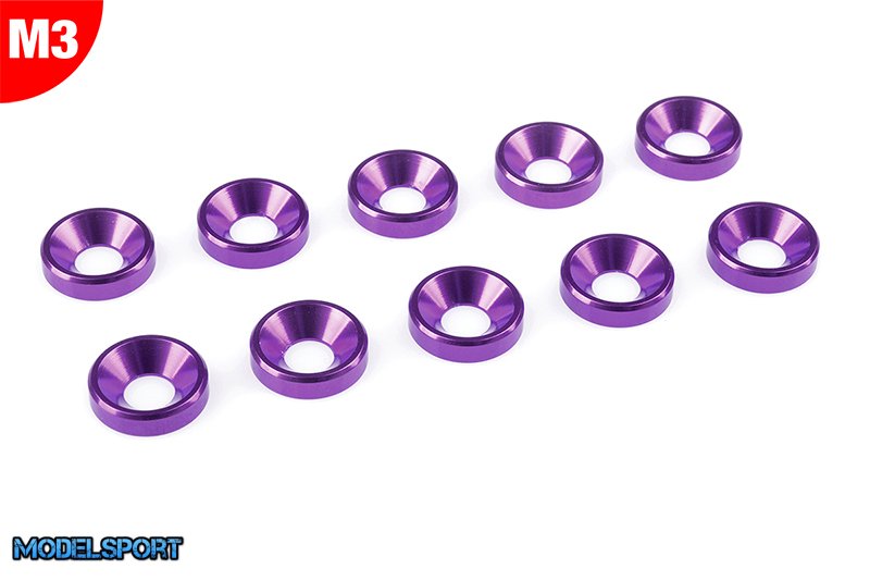 Team Corally - Aluminium Washer - for M3 Flat Head Screws - OD=8mm - Purple - 10 pcs