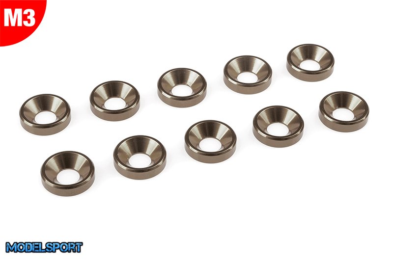 Team Corally - Aluminium Washer - for M3 Flat Head Screws - OD=8mm - Gun Metal - 10 pcs