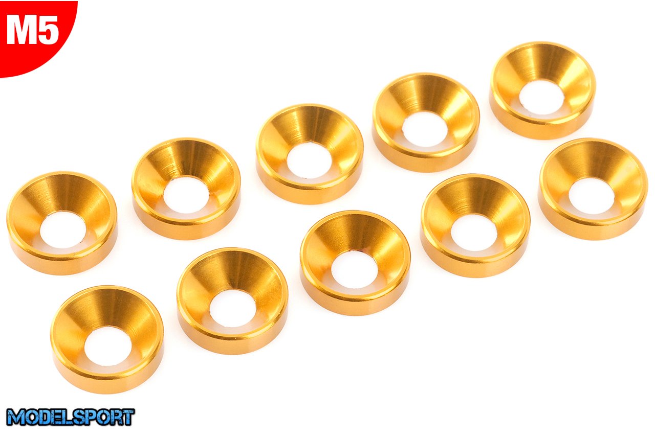Team Corally - Aluminium Washer - for M5 Flat Head Screws - OD=12mm - Gold - 10 pcs