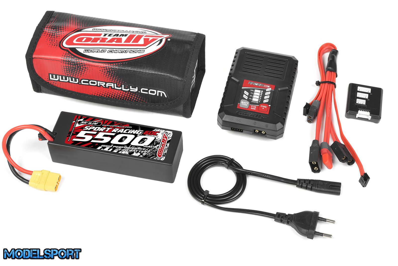 Team Corally - Energy Pack - Lipo 60C - 5500Mah - 3S - XT-90 - Hard Case + Racer 50 - 2-4S AC Charger + Lipo Safety Bag + Charge-Balance Lead
