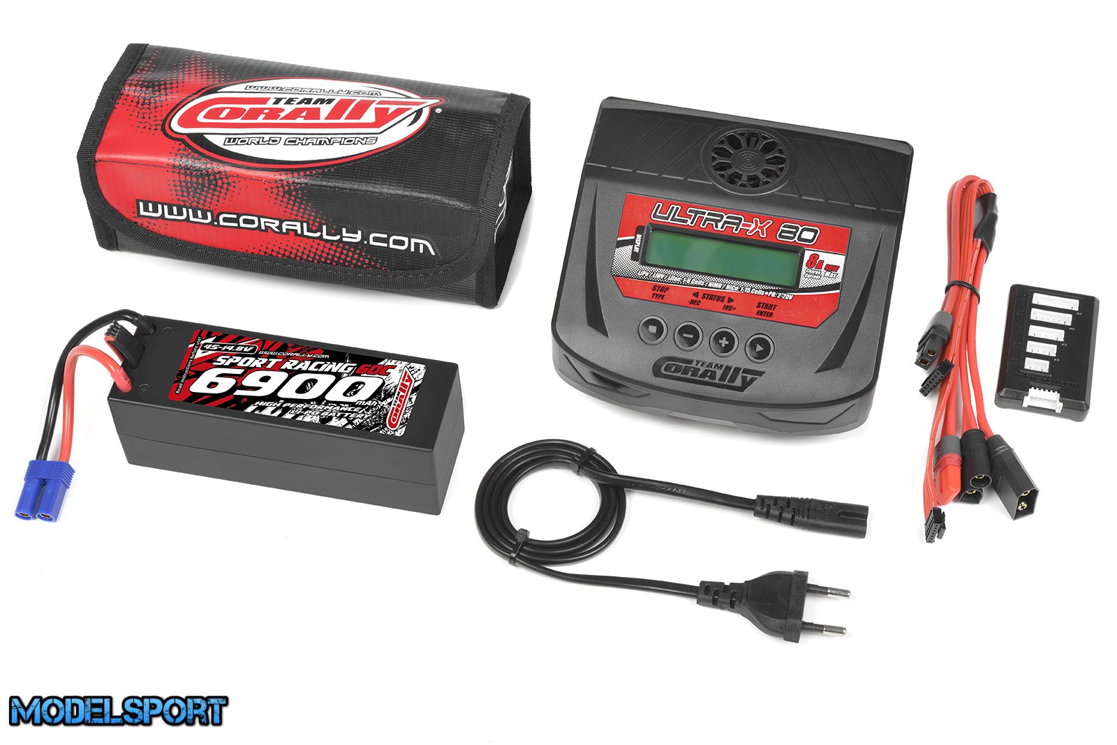 Team Corally - Energy Pack - Lipo 50C - 6700Mah - 4S - EC-5 - Hard Case + Ultra-X 80 - 1-6S AC/DC Charger + Lipo Safety Bag + Charge-Balance Lead